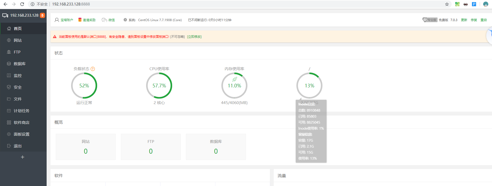 安装宝塔。如果提示 没有权限,可以使用 su root 命令授权root
