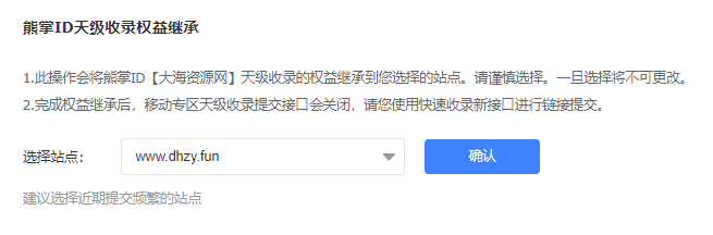 需要继承熊掌id的推送配额才可以正常使用该推送,点击旁边的按钮“继承熊掌ID权益”,接収验证码后就能成功继承之前熊掌id的配额