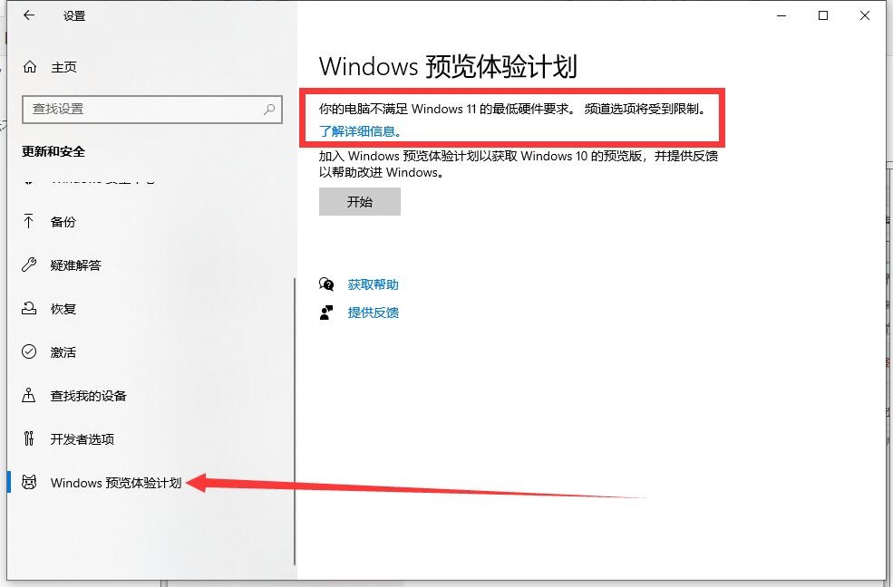 1、进入“设置” 中的 “更新和安全”,点击 “Windows 预览体验计划”。