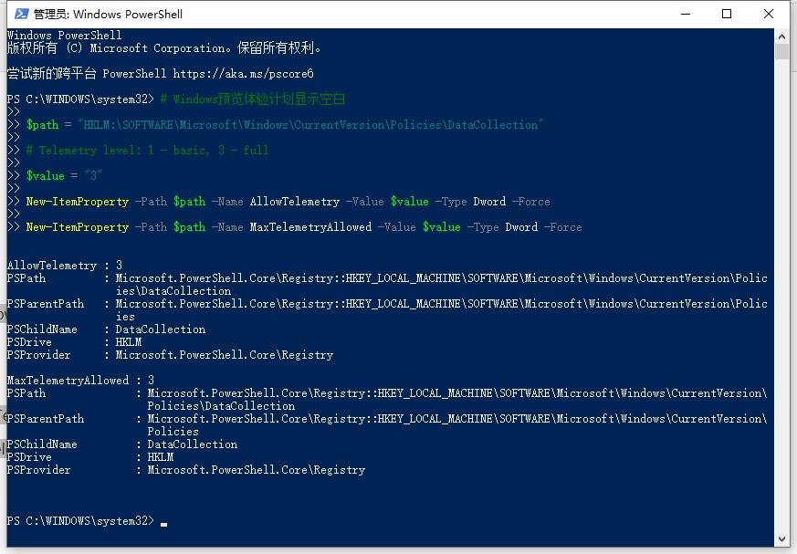 $path = "HKLM:\SOFTWARE\Microsoft\Windows\CurrentVersion\Policies\DataCollection"