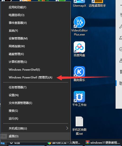 假如你这里没有开始按钮,那么右键单击左下角开始按钮,选择管理员启动powershell