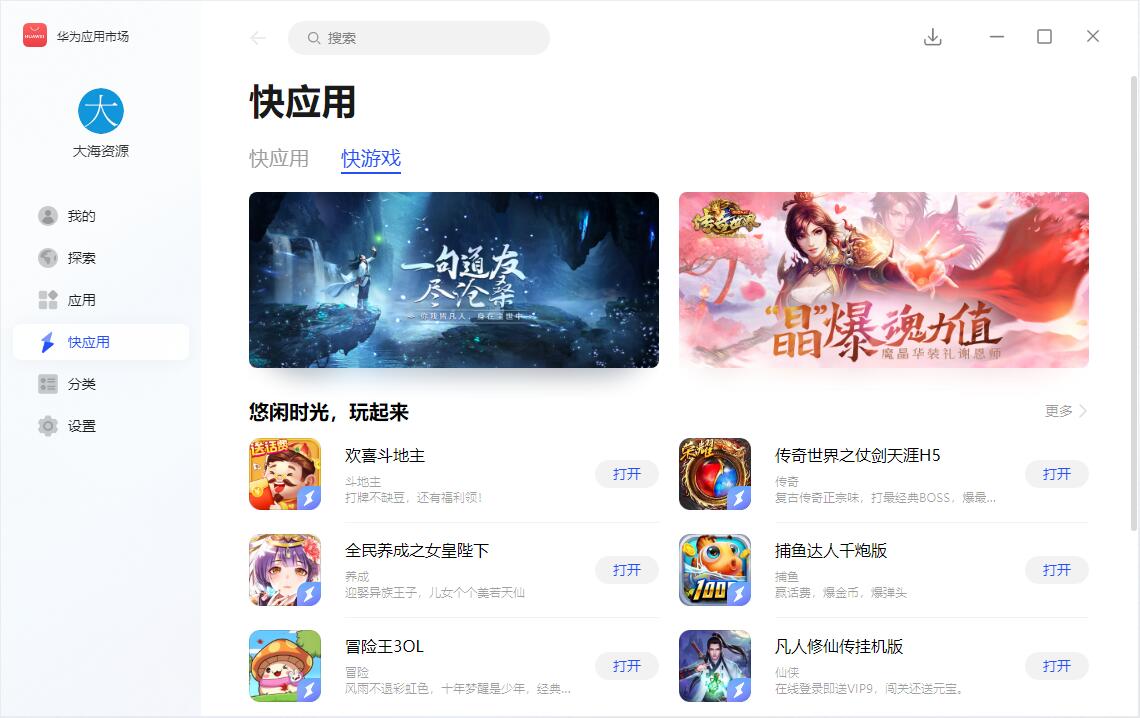 并且还有快应用,里边也收录了不少基于网页版生成的应用以及游戏,无需安装,点击立即运行使用。