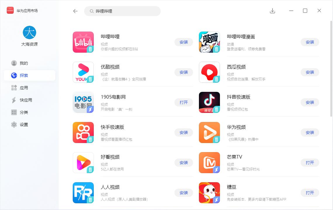 安装好后不是运行华为移动应用引擎,而是通过华为应用商店进行安装应用,暂不支持单独安装APK,也不能通过其它第三方应用商店诸如酷安来安装 App。在华为应用市场分类可以看到移动应用,里面就是安卓的应用了,好在华为应用市场里的软件还是挺多的,常用的软件基本都收录了。