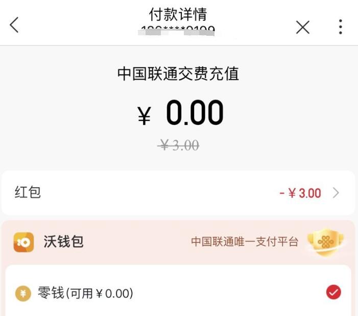 家庭副卡也可参与,我家是联通家庭宽带套餐,三个号,6块秒到账