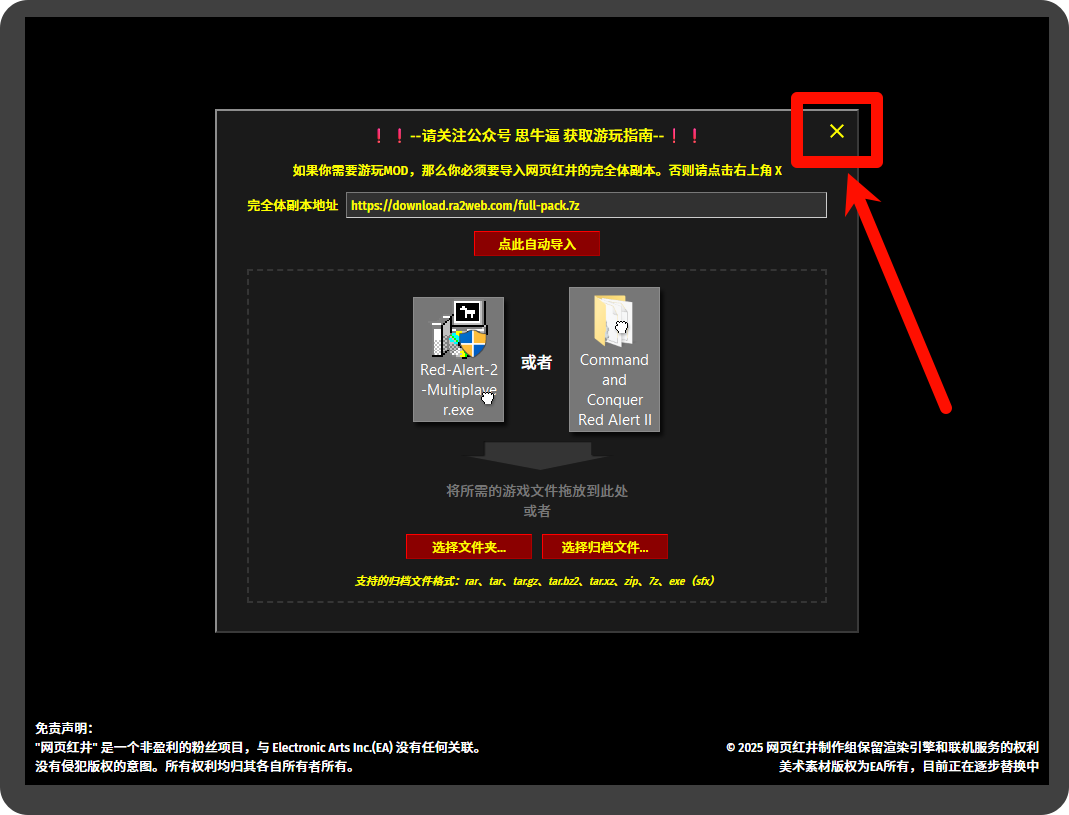 注意:点击立即开始后的画面是真对mod的,比如共和国之辉等特殊版本,假如玩原始版本,直接点击叉号就可以玩。