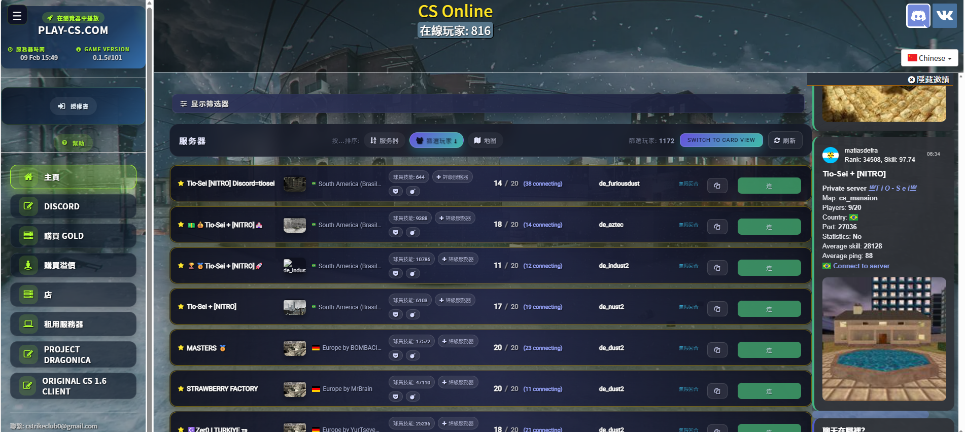 反恐精英 1.6 在线对战,浏览器点开即玩,可与全球玩家或机器人一起玩,有多种服务器和地图选择,包括经典地图如 de_dust2、de_aztec、cs_mansion 等,支持无限回合游戏,可选择不同的游戏模式,如 DeathRun、35hp、Surf 等,支持租用私人服务器,允许自定义游戏设置,完全免费,无需注册。